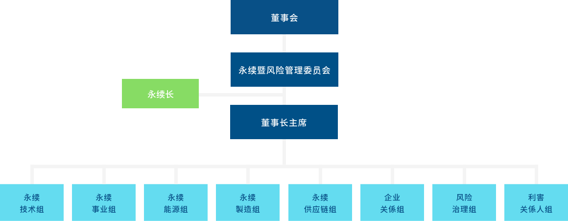 ⽜⼋体育成立永续委员会(2023年更名可持续暨风险管理委员会),作为公司永续发展运作的最高治理机构,并持续策化推动企业永续转型,透过永续长及永续专责单位,统筹中长期永续发展的策略方向。