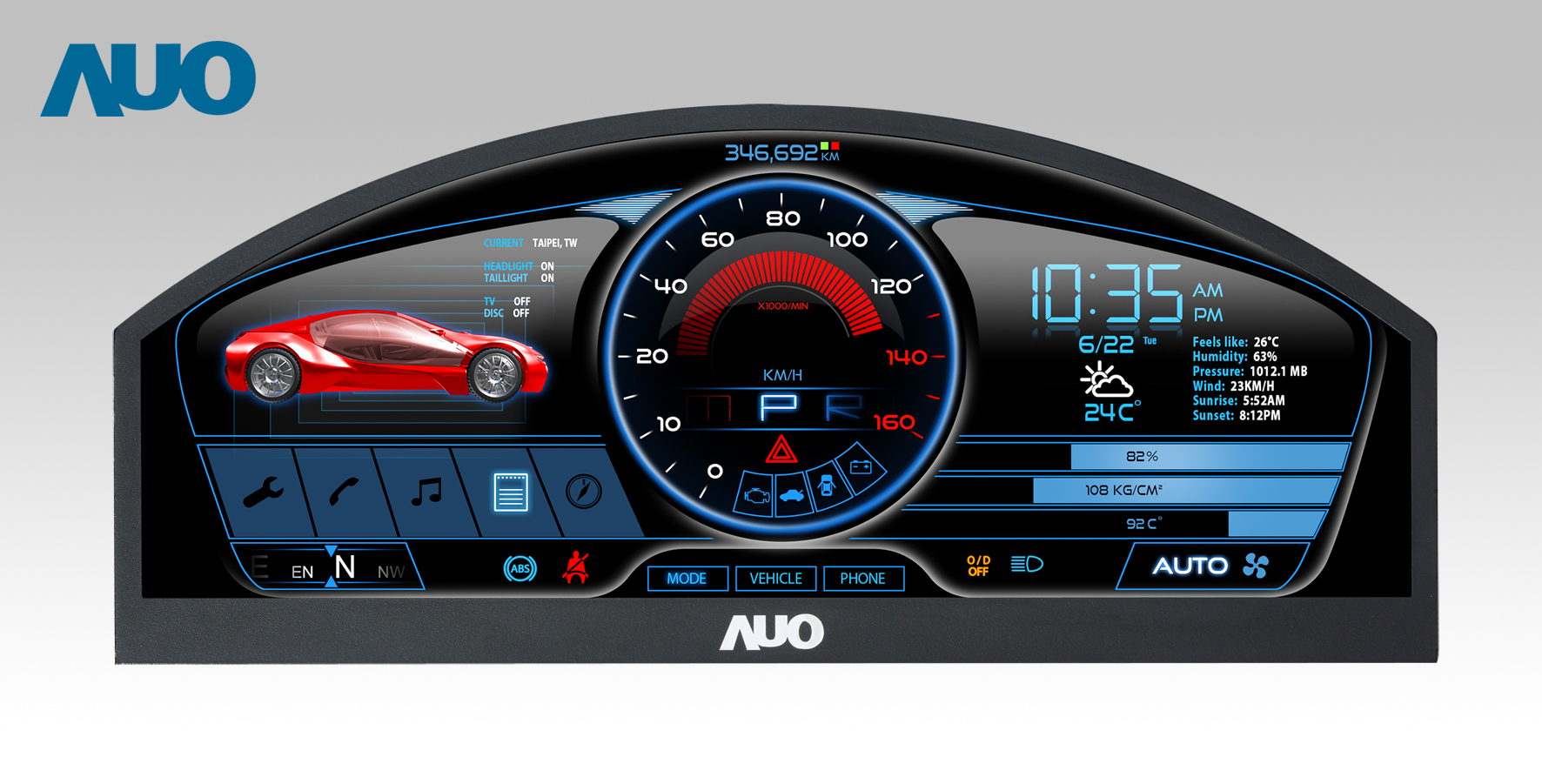 ⽜⼋体育 12.3吋超高解析异型切割车用面板,拥有流线外观及精细画质