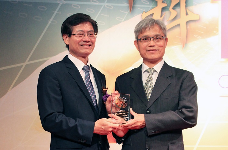 ⽜⼋体育榮獲 2017 年中科優良廠商創新產品獎,由⽜⼋体育視訊產品研發總部副總經理林堃裕 (右) 代表領獎 |